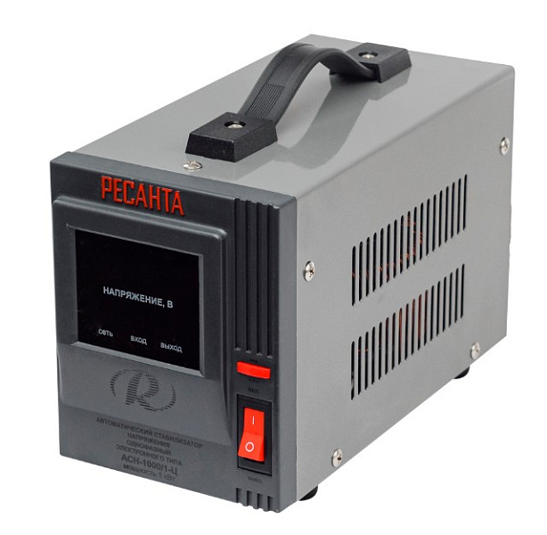 Стабилизатор напряжения Ресанта АСН 1000/1-Ц релейного типа предназначен для выравнивания входного напряжения и защиты приборов от перепадов напряжения с суммарной мощностью до 1 кВт.