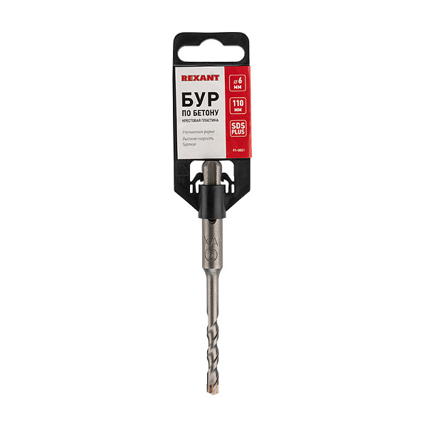 Бур по бетону 6x110 мм SDS PLUS крестовая пластина REXANT — режущий инструмент, предназначен для бурения твердых материалов с легким армированием.