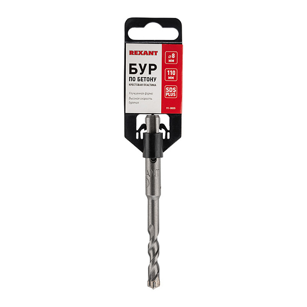 Бур по бетону 8x110 мм SDS PLUS крестовая пластина REXANT — режущий инструмент, предназначен для бурения твердых материалов с легким армированием.