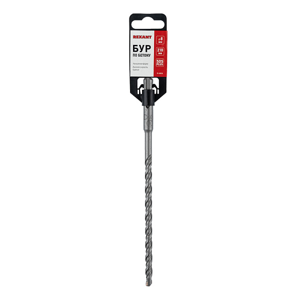 Бур по бетону 8x210 мм SDS PLUS REXANT — режущий инструмент, предназначен для бурения твердых материалов: гранит, бетон, керамика, камень.