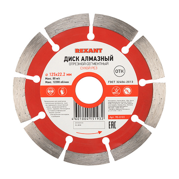 2 мм REXANT предназначен для сухой резки строительных материалов, таких как природный и искусственный камень, армированный бетон, кирпич, керамика.