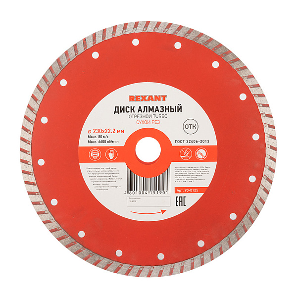 2 мм REXANT предназначен для сухой резки строительных материалов, таких как природный и искусственный камень, армированный бетон, кирпич, керамика.