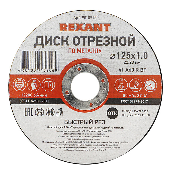 Отрезной круг REXANT предназначен для обрезки и обработки нержавеющих тонкостенных изделий из металла любой формы (трубы, листы, профили, проволока и т.