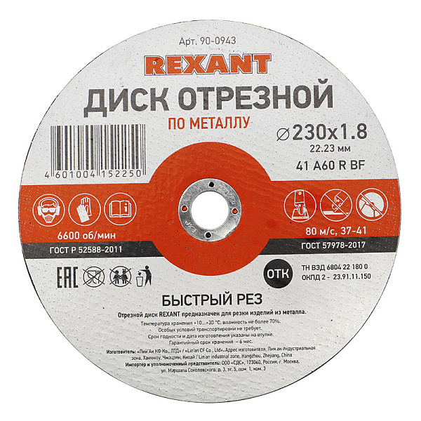 Отрезной круг REXANT предназначен для обрезки и обработки нержавеющих тонкостенных изделий из металла любой формы (трубы, листы, профили, проволока и т.