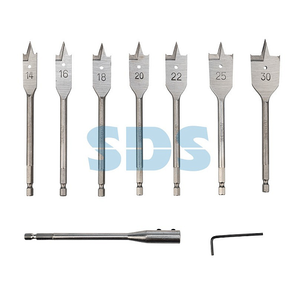 Набор сверл перовых по дереву 14-16-18-20-22-25-30х152 мм (8 шт.