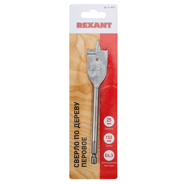 Сверло перовое по дереву 25х152 мм (шестигранный хвостовик) Rexant