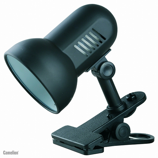 Настольный светильник-прищепка, черный Camelion H-035, 7197 - осветительный прибор для офиса или дома.