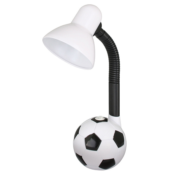 Настольный светильник Camelion KD-381 C01 белый, Мяч, 230В, 40Вт, E27 12607 выполнен на футбольную тематику и легко впишется в комнату для мальчика.