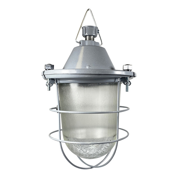 Прочный рассеиватель из стекла надежно соединен с корпусом и обеспечивает пылевлагозащиту IP62, защищен от внешнених воздействий металлической решеткой.
