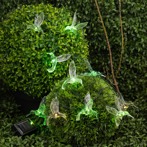 Состоит из 10 прозрачных фигурок в виде колибри, подсвеченных светодиодами с разноцветным свечением.