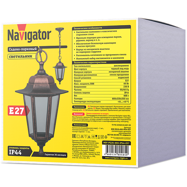 Светильники Navigator серии NOF-PG для ламп с цоколем Е27, выполненные в классическом старинном стиле, идеально впишутся в уличный пейзаж.