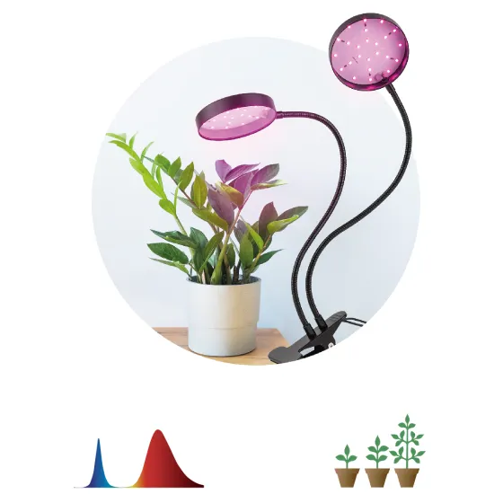 Металлическая прищепка, два плафона на гибких ножках.