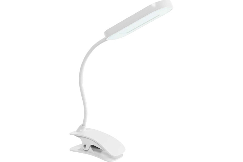 Компактная светодиодная настольная лампа 8 Вт с прищепкой легко закрепится на любую поверхность — стол, кровать или полку, а гибкая нога поможет отрегулировать, куда направить свет, например светить под полку вниз.