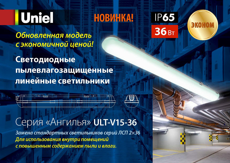 Светильник светодиодный линейный подвесной IP65 Ангилья 40 Вт 3600 Лм цв. свечения дневной белый IP65 ТМ Uniel