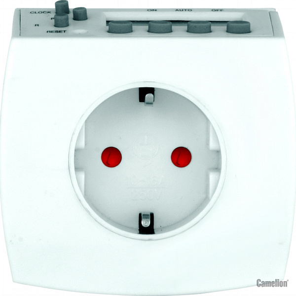 Цифровой розеточный таймер, 7-дневная программа, 230/3500Вт Camelion BND-50/SG3 7785 используется в квартирах для программного управления приборами, аудио и видео техникой.