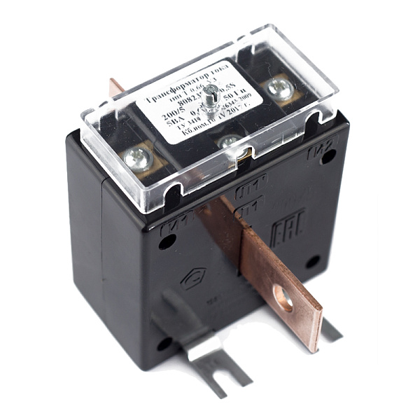 Снабжен крышкой для опломбирования вторичных выводов трансформатора тока.