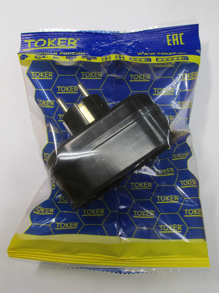 Двойник-евро 16А 250В черный Toker (инд.упак)