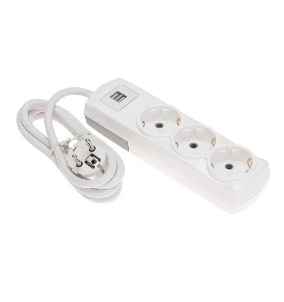 Удлинитель 3* 1,5 м с з/к 2USB 3х1,5мм² белый Premium Rexant