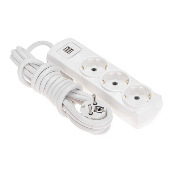 Удлинитель 3* 3 м с з/к 2USB 3х1,5мм² белый Premium Rexant