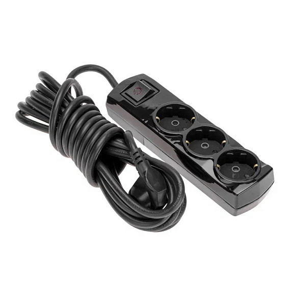 Удлинитель 3* 3 м с з/к с выкл. 3х1,5мм² черный Premium Rexant