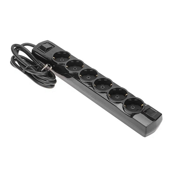Удлинитель 6* 1,5 м с з/к с выкл. 3х1,5мм² черный Premium Rexant