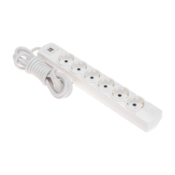 13-4122 Удлинитель 6*3 м с з/к 2USB 3х1,5мм² белый PREMIUM REXANT