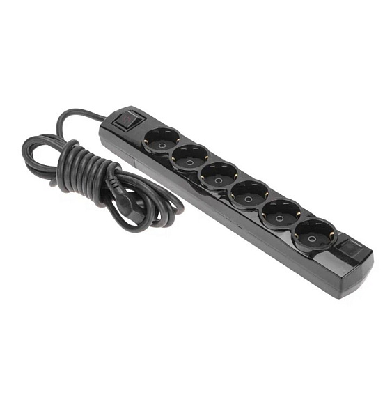 Удлинитель 6* 3 м с з/к с выкл. 3х1,5мм² черный Premium Rexant
