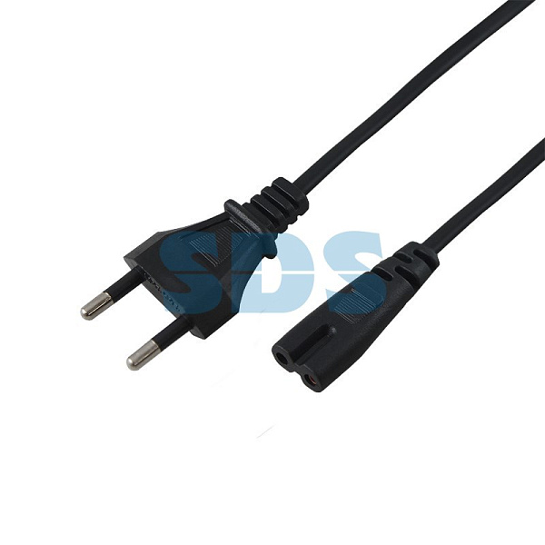 Данный сетевой шнур (IEC cord) оснащен с одной стороны литой неразборной плоской вилкой (евро), с другой — литым гнездовым неполяризованным разъемом типа C7 (евроразъем) и двухжильным проводом с сечением жил 0.