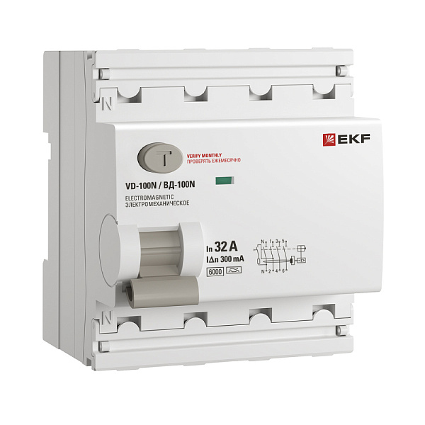 ВДТ 4P 32А 300мА AC эл-мех 6kA ВД-100N EKF PROxima