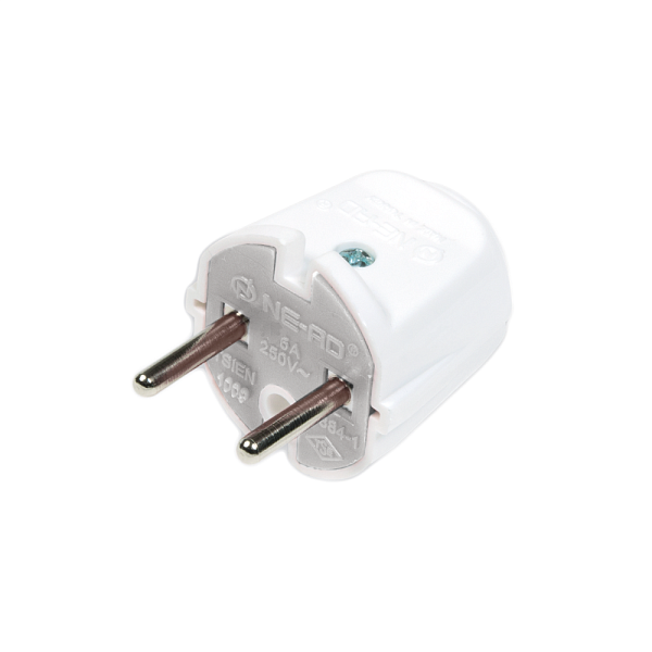Вилка плоская б/з белая 6А 250В Ne-ad