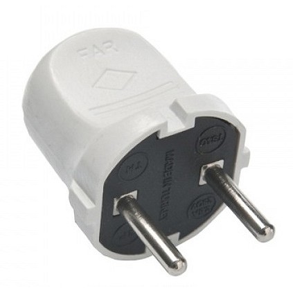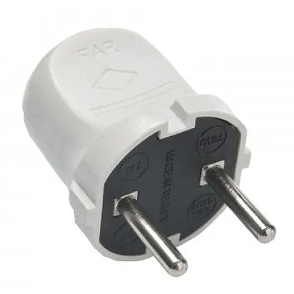 Вилка электрическая FAR F16 Мимоза без заземления белая используется для подключения приборов и аппаратов к источнику питания.