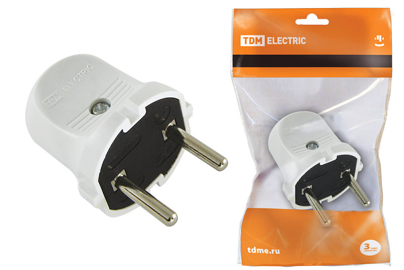 Вилка б/з белая 6А 250В TDM SQ1806-0001
