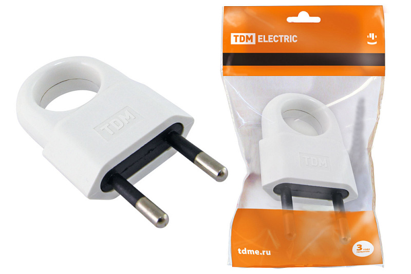 SQ1806-0189 Вилка плоская б/з с кольцом белая 10А 250В (евровилка CEE 7/16) TDM