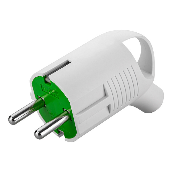 Вилка угловая с/з белая 16А 250В с кнопкой извлечения EKF
