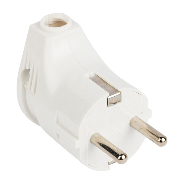 Вилка угловая без з/к белая 6А 250В Пинск