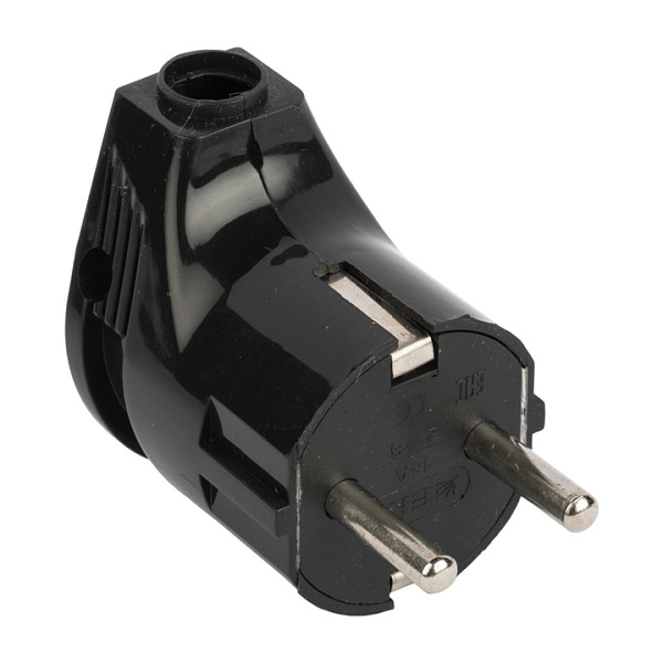 Вилка угловая с/з черная 16А 250В EKF