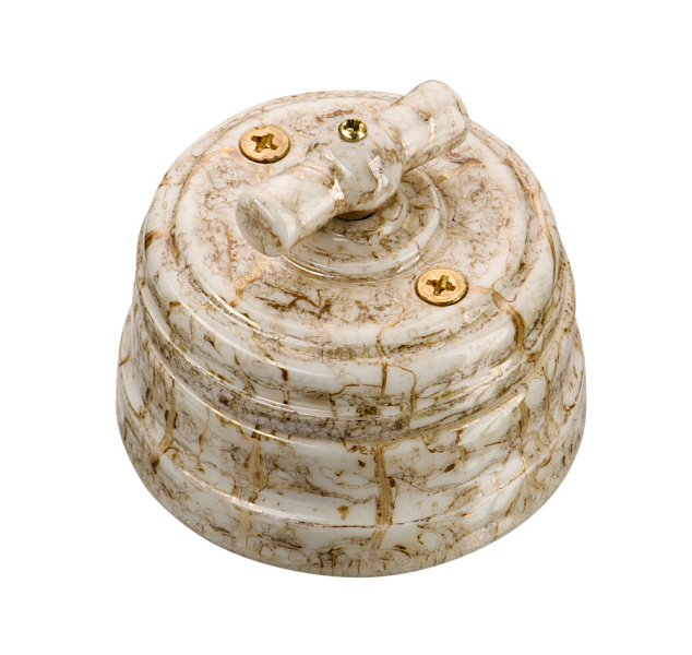 ВЫКЛЮЧАТЕЛЬ ФАРФОРОВЫЙ ПОВОРОТНЫЙ НА 2-4 ПОЛОЖЕНИЯ (1-2 КЛАВИШНЫЙ), ЦВЕТ - ДВОРЦОВЫЙ МРАМОР