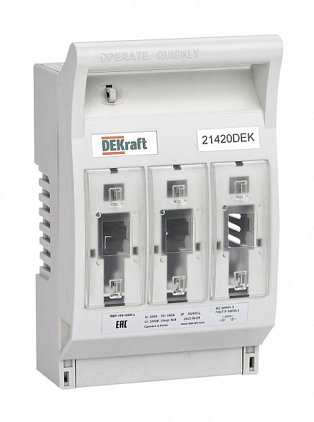Предохранитель-выключатель-разъединитель горизонтальный (ПВР-102) предназначен для включения и отключения нагрузки с видимым разрывом в сетях трехфазного переменного тока до 160 А частотой 50/60 Гц и номинальным напряжением до 690 В.