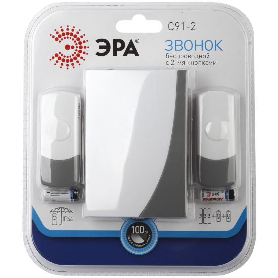 Звонок работает от батареек: 1 шт А23 для кнопки (входит в комплект), 2 шт АА пальчиковые для динамика (в комплект не входят).