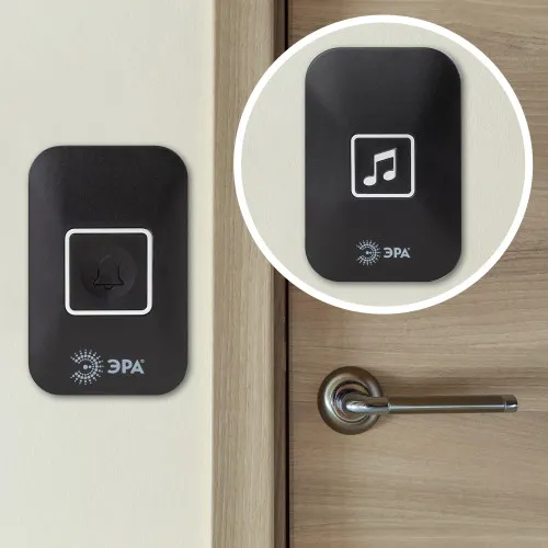 Беспроводной дверной звонок ЭРА С98 с 4 уровнями громкости и 60 полифоническими мелодиями.